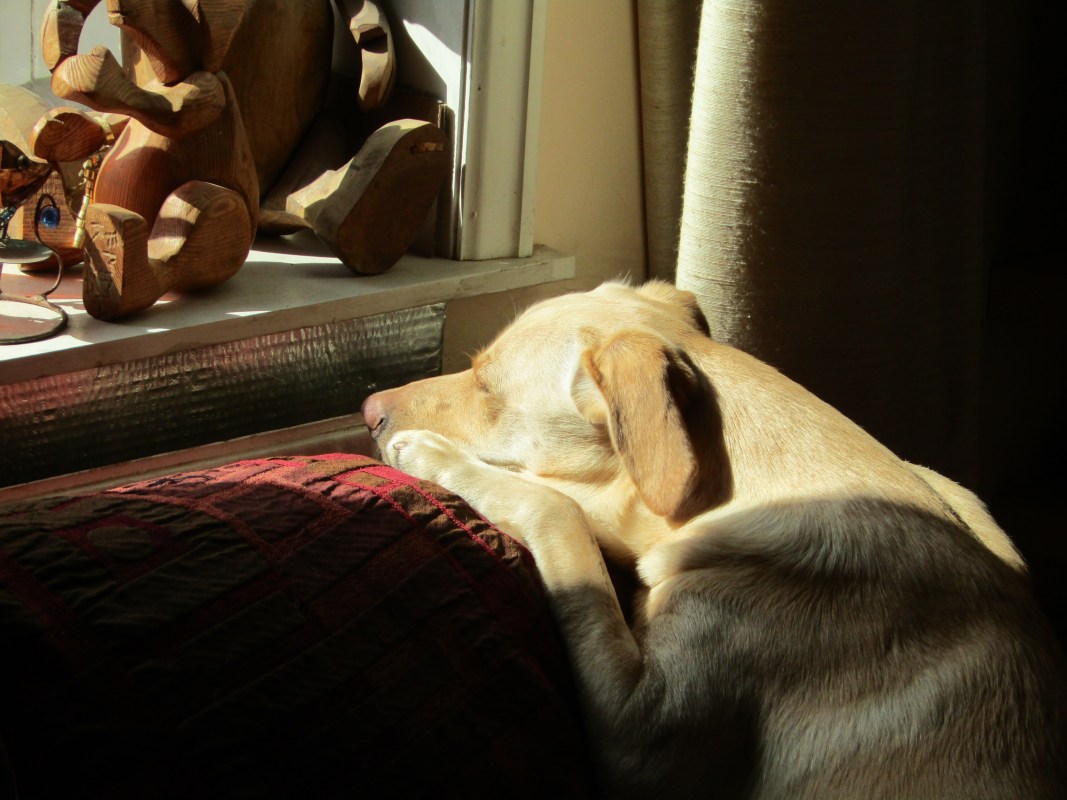The strange thing is, though, I’m fairly certain I’m happy. I get up and make the dough for the bread. I walk the dog and collect firewood. I come home and put the bread in the oven to cook while I feed the dog and clean the kitchen floors. I write for a bit, usually some ghost-written trash. I eat lunch with my mum and dad and who ever else has turned up – my brother moved out again 3 days before his 48th birthday. I prep my lessons and go and teach for a few hours, or if I’m not teaching I go into the basement to help dad making instruments. If it’s my turn, I cook the tea. Then I sit in-front of the fire watching crap telly drinking the wine we made in the summer. And I have this wonderful, happy dog.