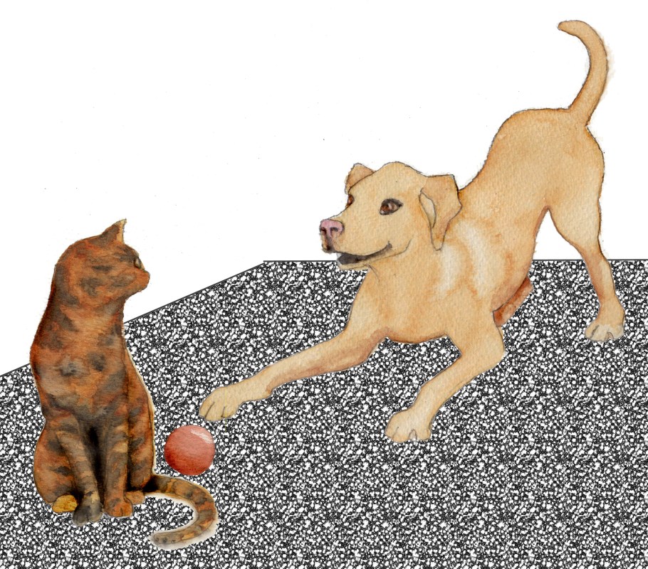 When I got Floyd the dog my primary concern was to find a dog that would either ignore her completely or be a little nervous of her. Floyd had lived with cats before and was frightened of them – not to a degree that it was cruel on him to live with a cat.